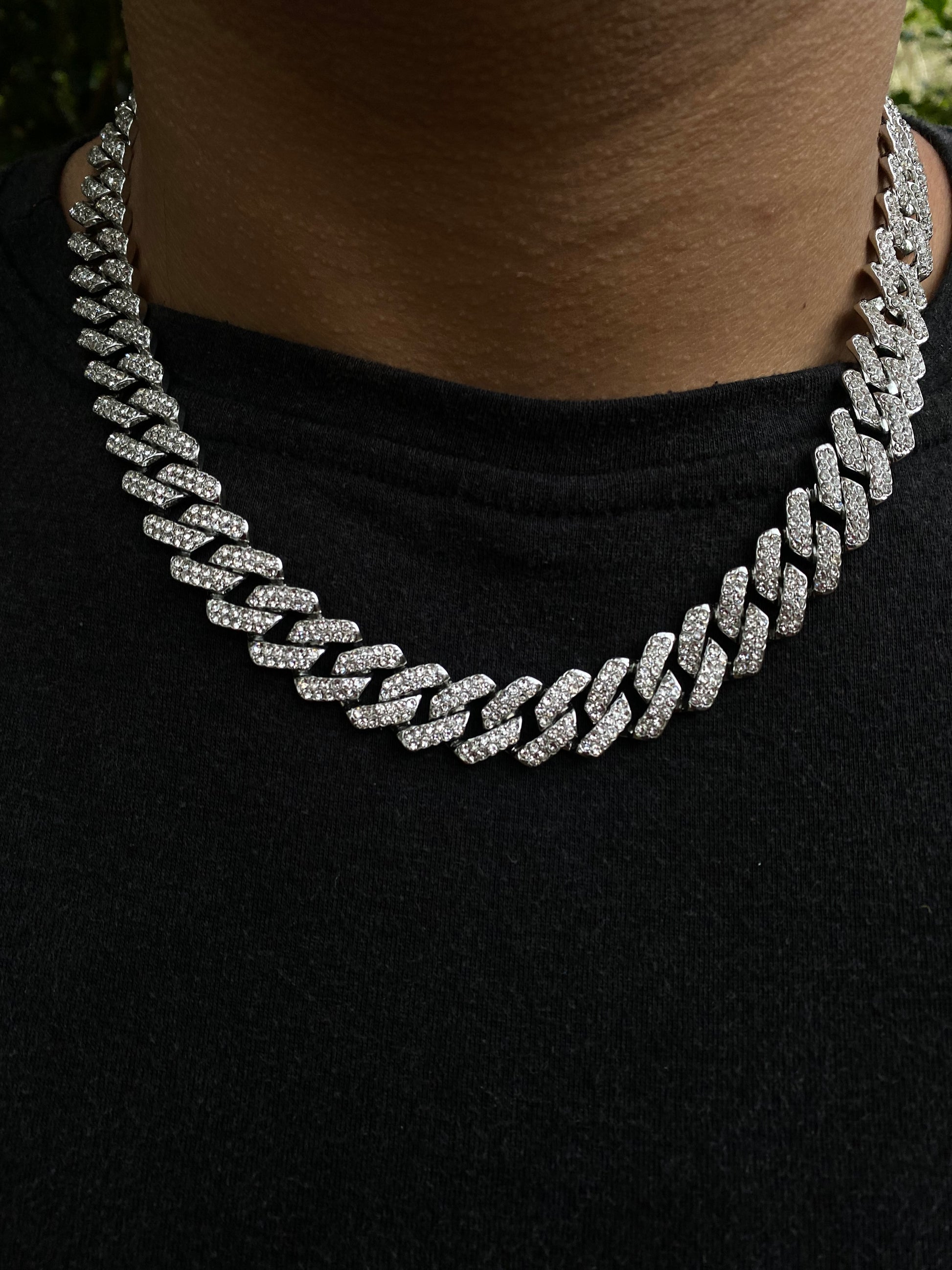 Esta cadena cubana no es solo un accesorio, es una declaración. Fabricada en acero inoxidable y con un acabado plateado, su brillo es imposible de ignorar. Con 55 cm de largo y 12 mm de ancho, cada circonita incrustada atrapa la luz, creando un resplandor deslumbrante que habla de tu personalidad. Es la pieza perfecta para añadir un toque de elegancia y audacia a cualquier atuendo.