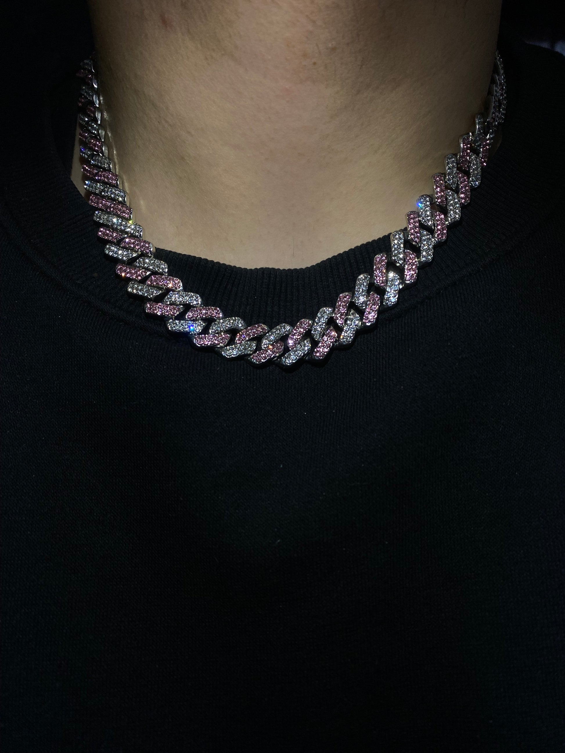 Cubana 50 cm con eslabones rosados y circonias de diamante
