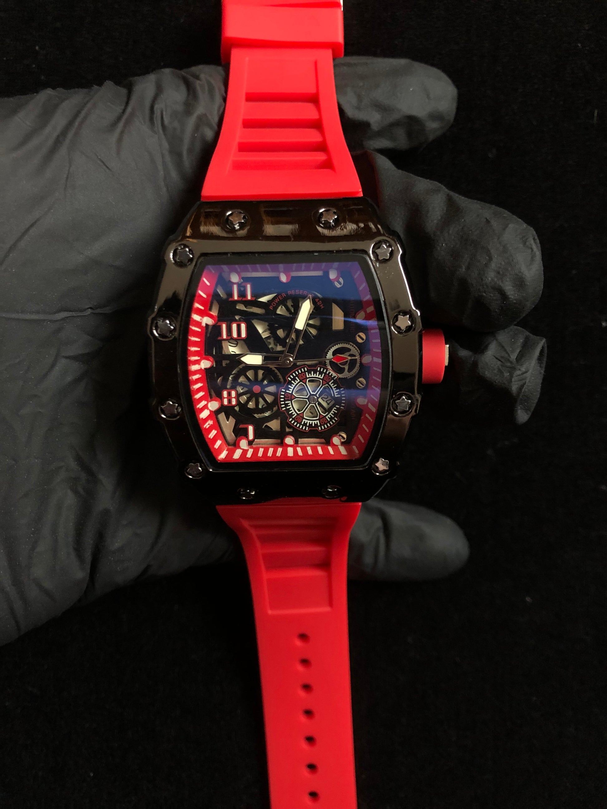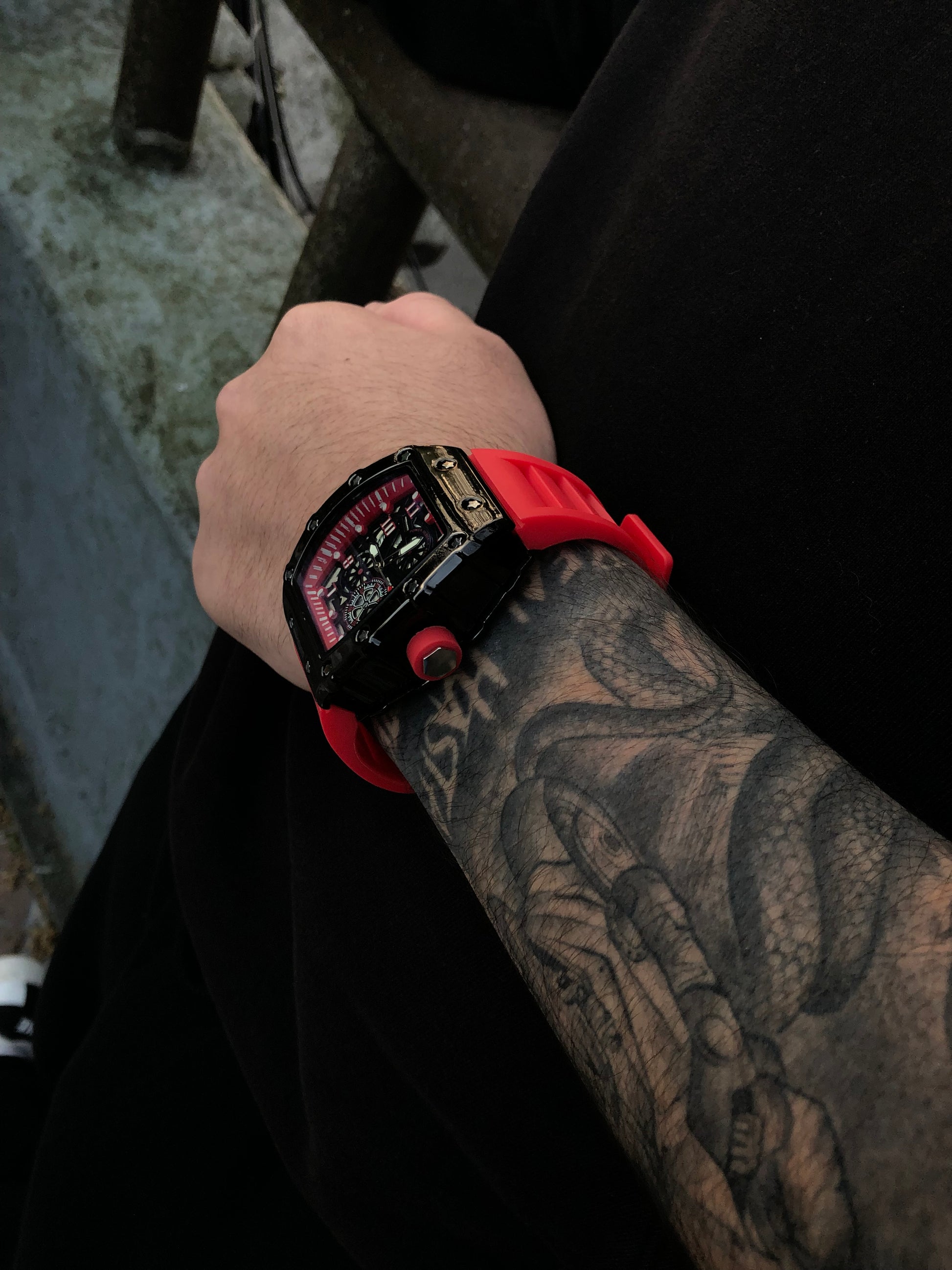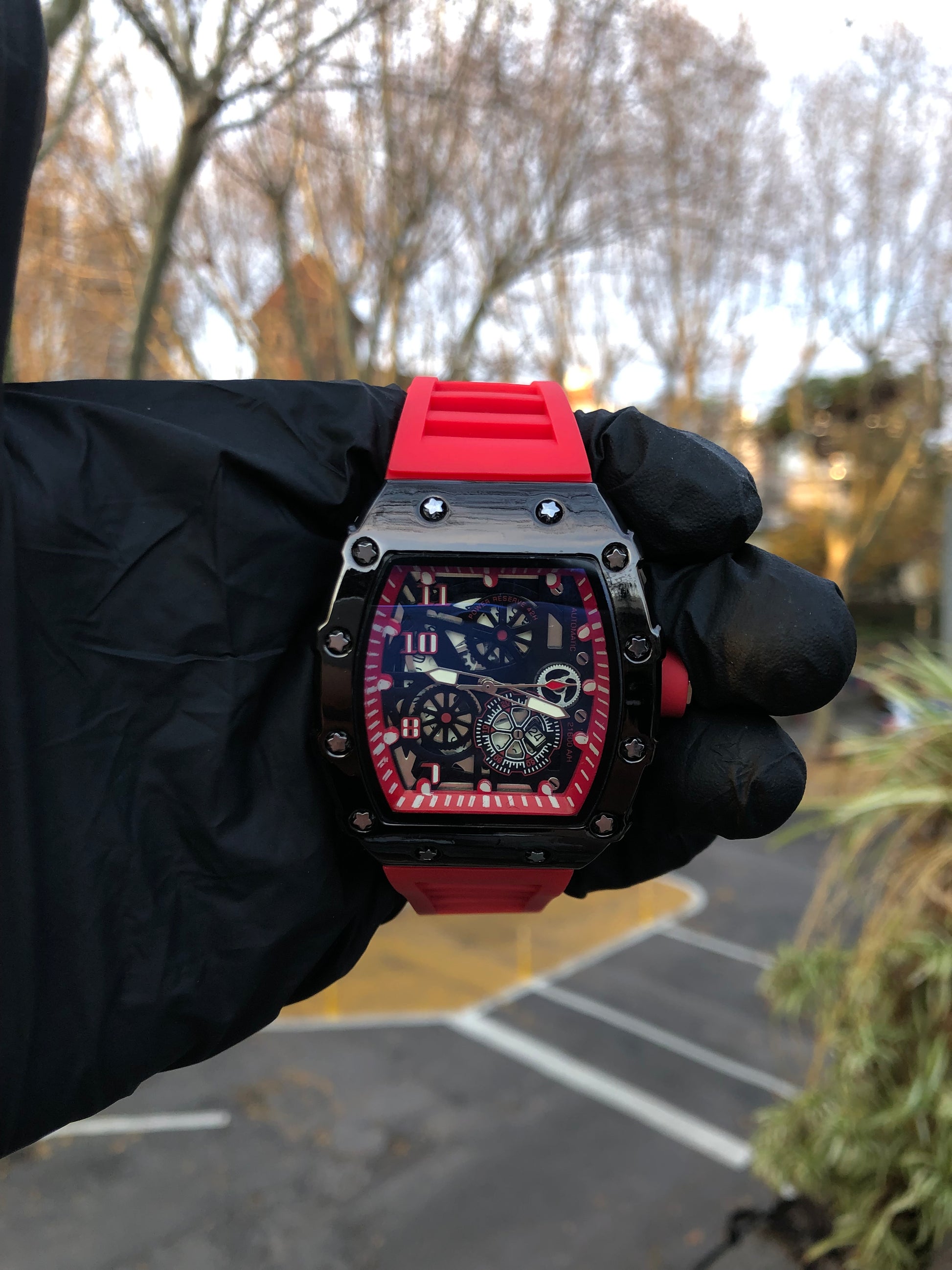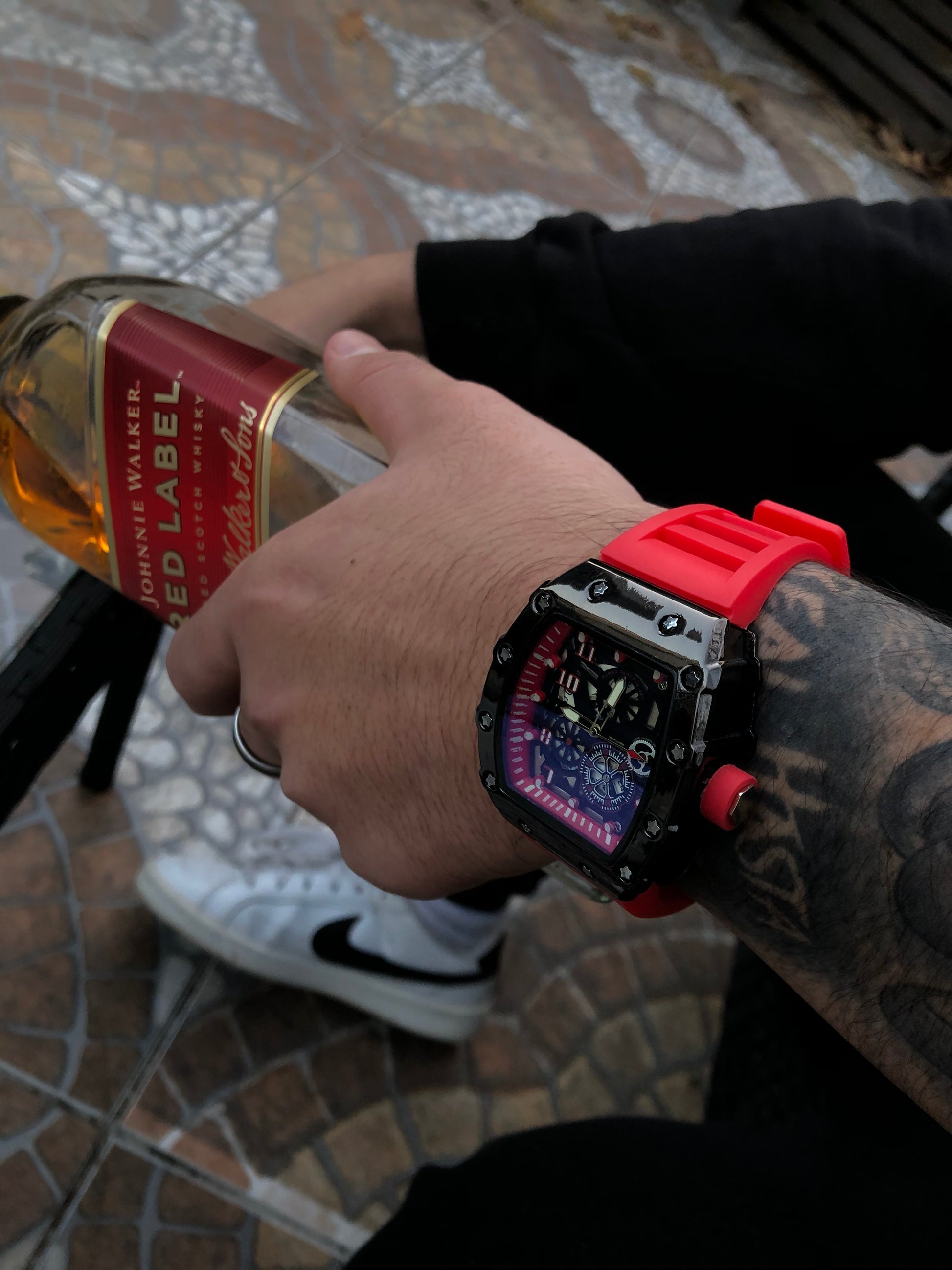 - 🔒 Caja reforzada de acero inoxidable con detalles en rojo, diseñada para máxima durabilidad.
